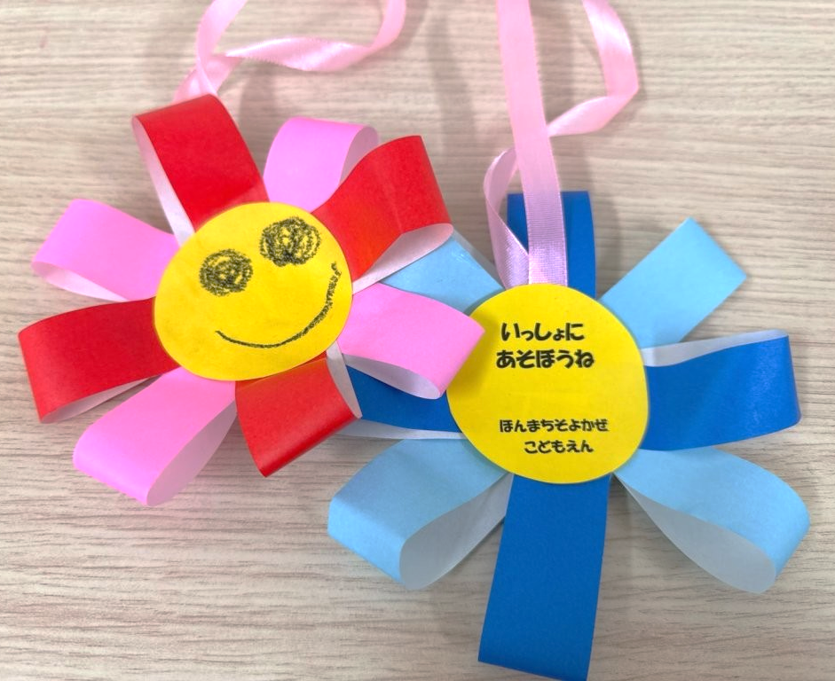 入園式では、かぜ組(5歳児)が園応援歌「はじめからここから」と、スマイルをテーマにしたメダルを新入園児にプレゼントしました。そら組(4歳児)は歌「チューリップ」、もり組(3歳児)は「アンパンマンの手遊び」を披露しました。緊張した様子もありましたが、沢山の拍手をもらうと嬉しそうな表情を見せていた子どもたちです。これから、新しいクラスや友だちと過ごすことへの期待感が高まったようでした。