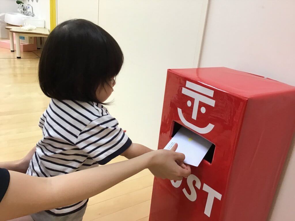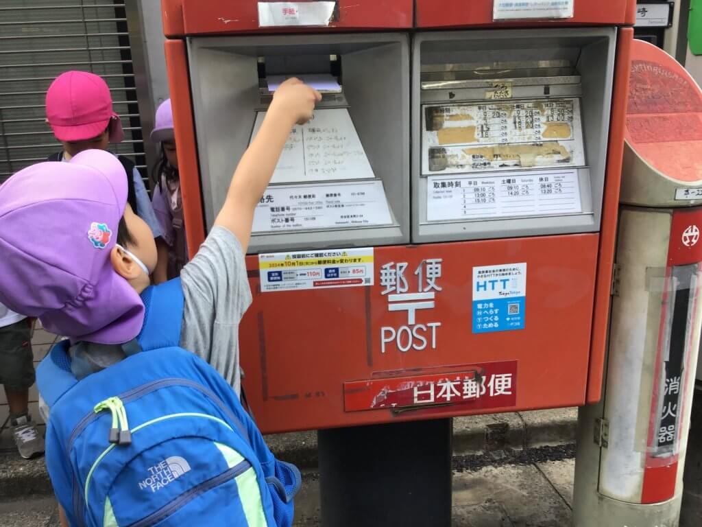 3~5歳児クラスの子どもたちは実際に近隣のポストに行って手紙を投函しました。「お手紙届きますように!」と想いを乗せてポストに投函していました。