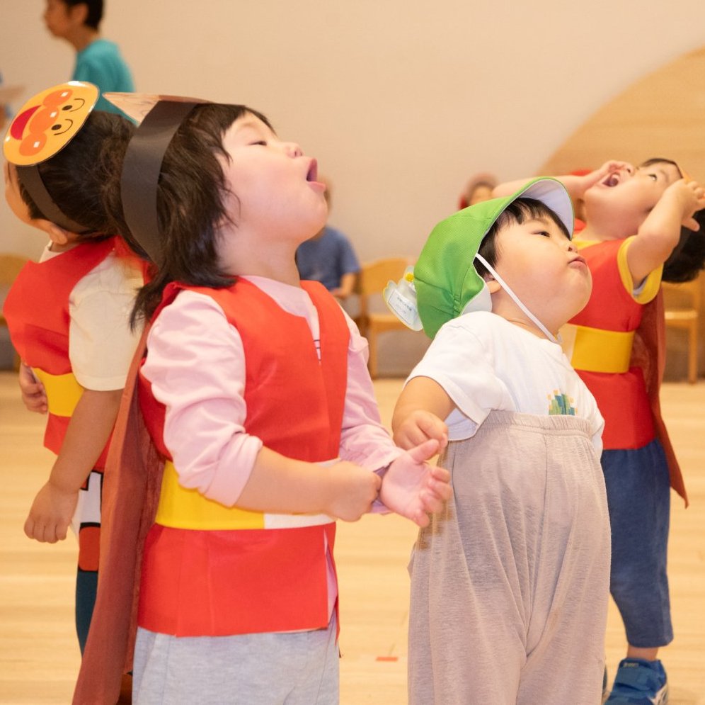 ちゅうりっぷ組(2歳児クラス)は大好きなアンパンマンに変身し、親子でばいきんまんをやっつけました!