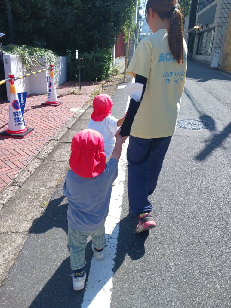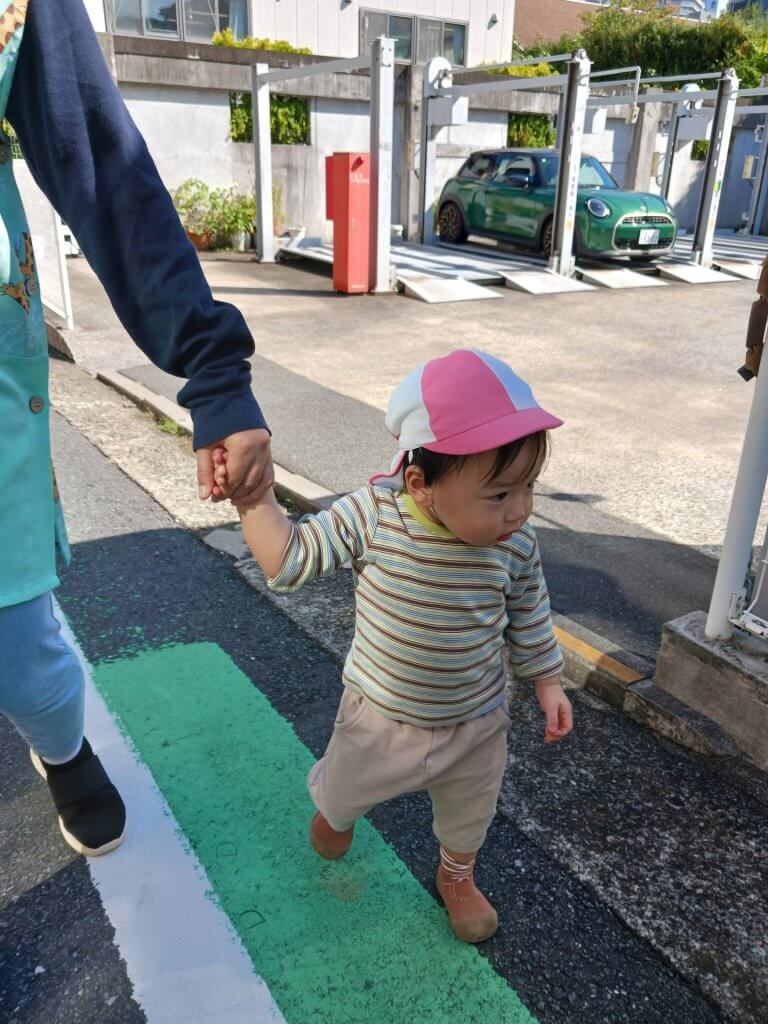 保育者と手を繋ぎ、一生懸命歩く姿も可愛らしいです。