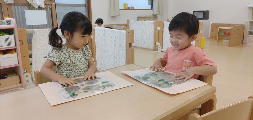 集めた落ち葉をお部屋で観察。これ拾ったんだよ~とお話しもしていましたよ。
