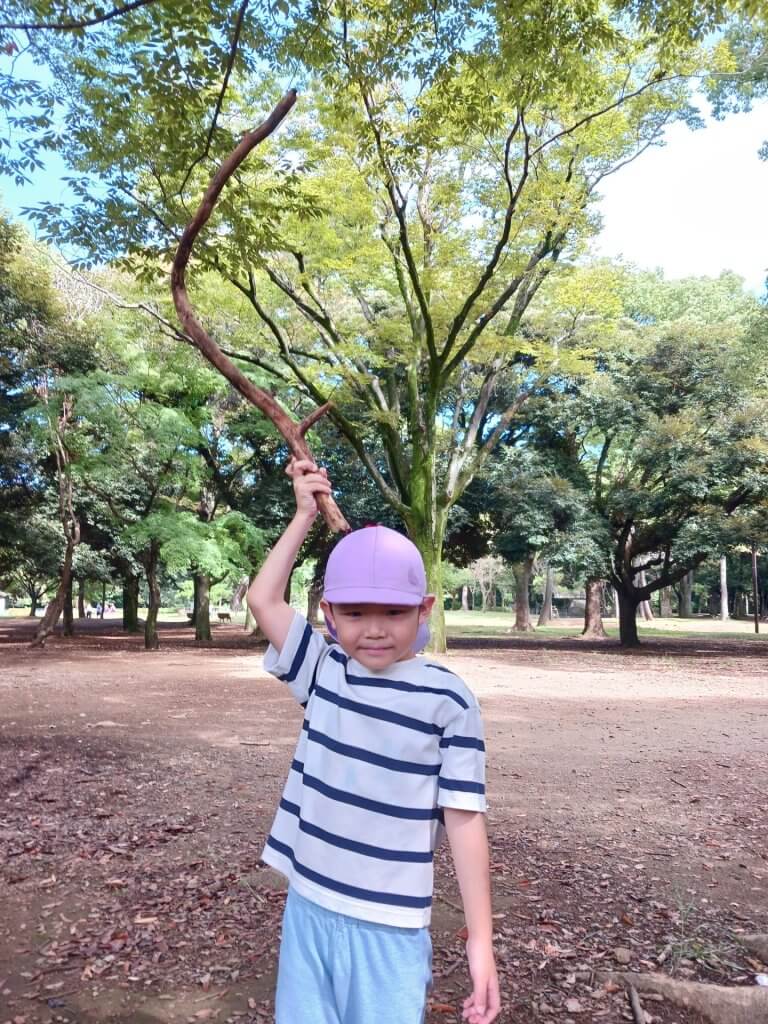久しぶりに代々木公園へ散歩に行きました。大きな松ぼっくりを拾ってピース!