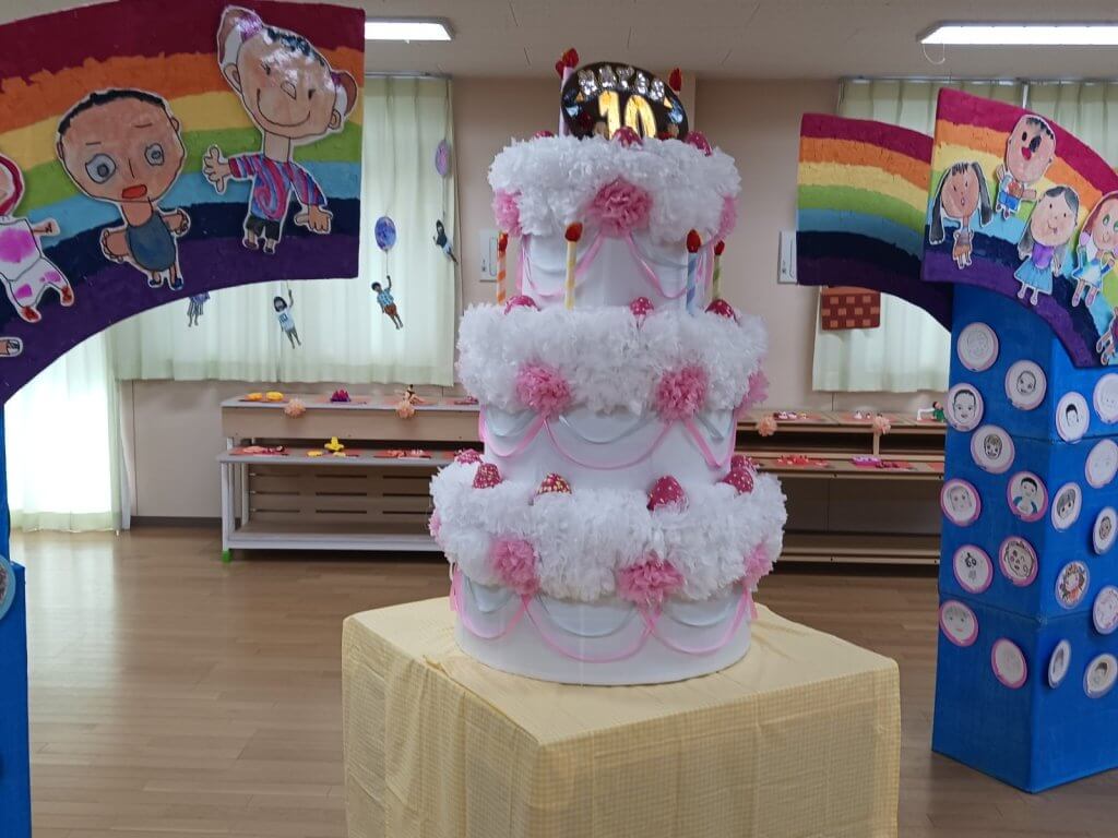 子どもたちより大きなバースデーケーキの登場に大きな歓声が!