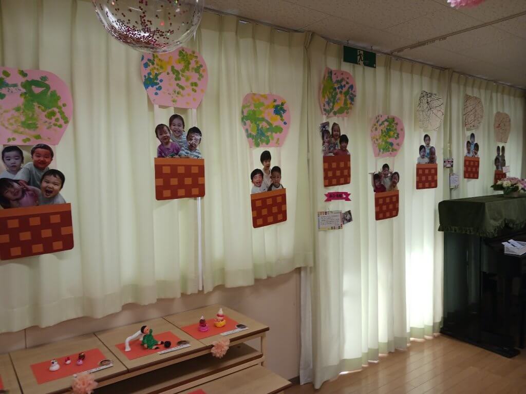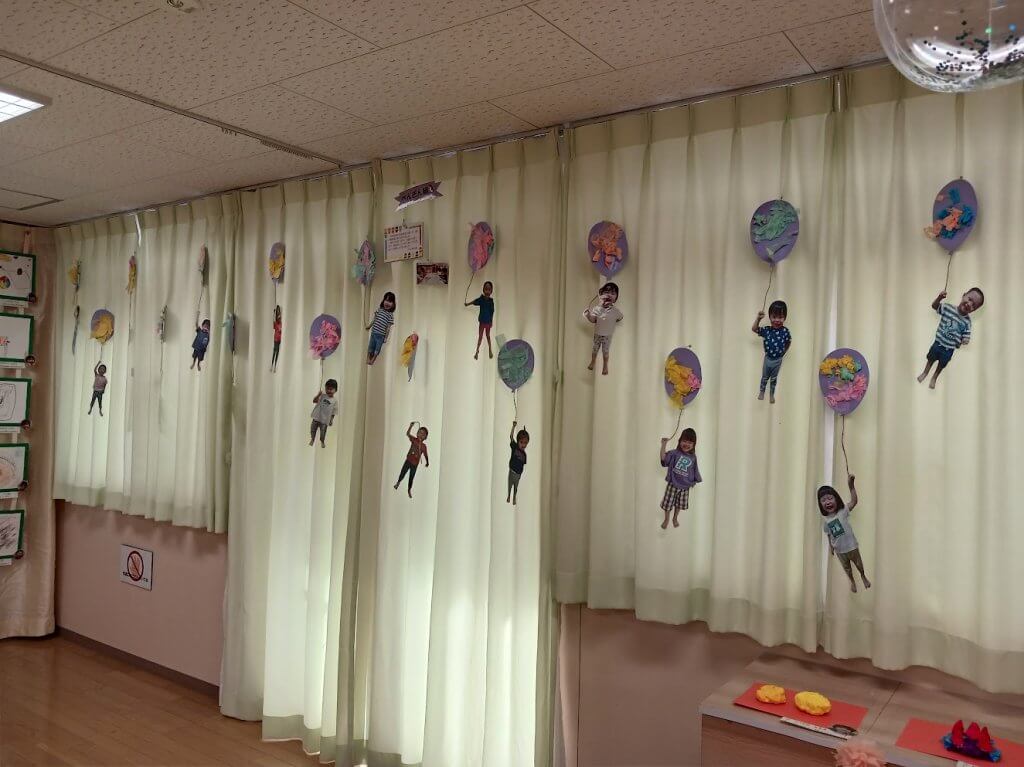 子どもたちも自分の作った作品が飾ってあるのが嬉しくて、お迎えの時に見に行く事もあったようです。