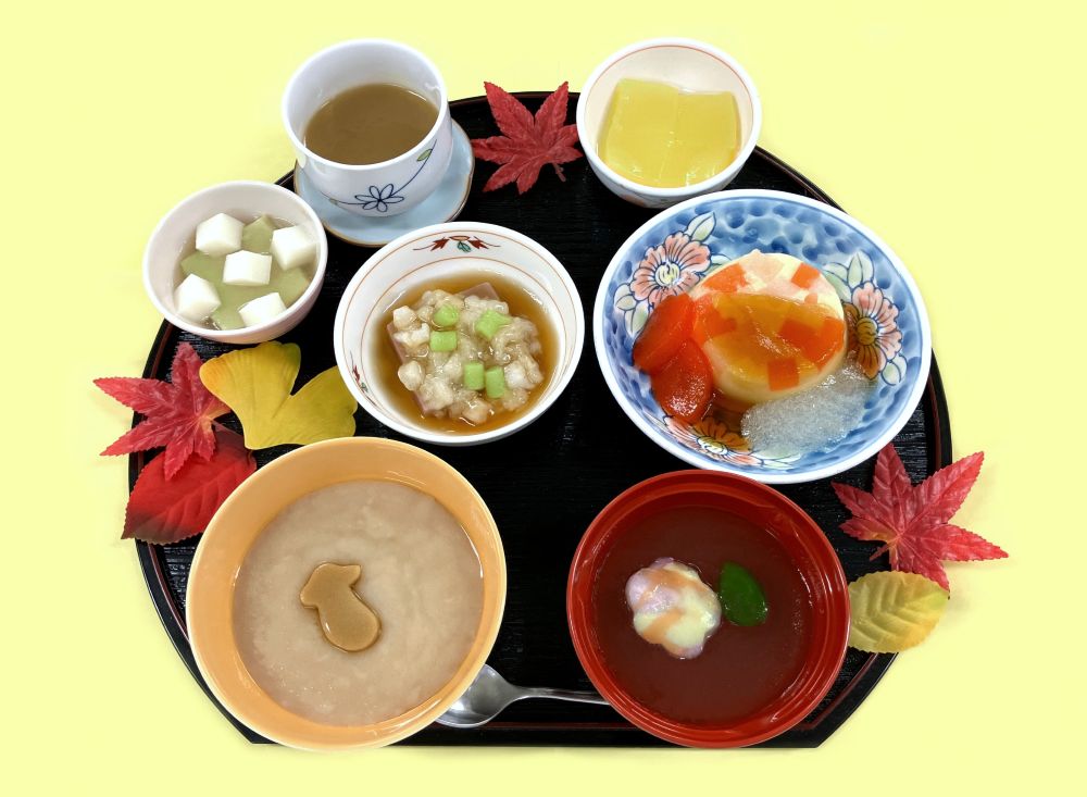 中に入る食材は様々で、根菜などの野菜と小豆や大豆などの豆類、こんにゃくや竹輪など提供する行事ごとでも異なります。
