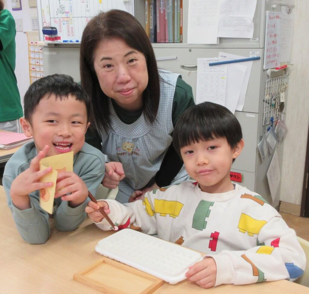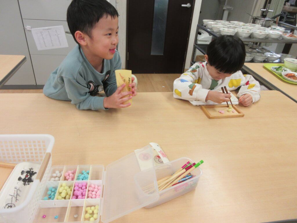 お箸の持ち方の練習を積み重ね、上手になったらお箸検定に挑戦します。合格しないこともあるけど、