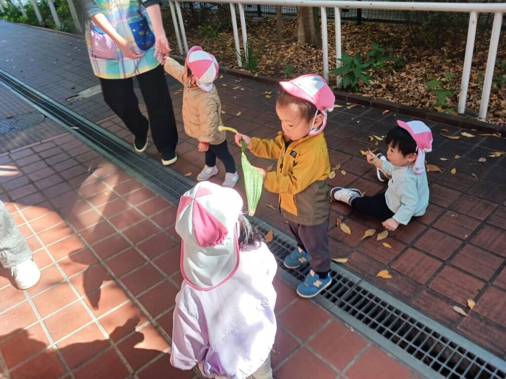 バギーで散歩に出かけていた赤ちゃん達も、歩いての散歩デビュー。