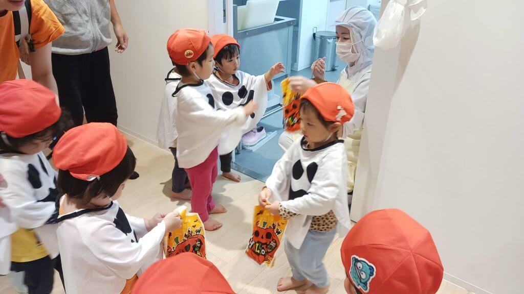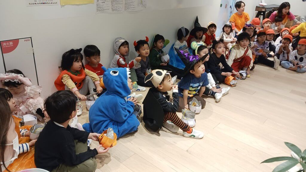 10月31日ハロウィンの日は全クラス、館内を練り歩きました。