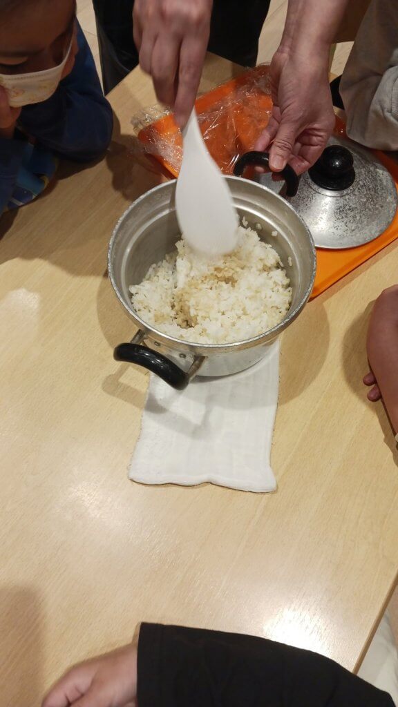 お米を瓶に入れて麺棒で擦ったり、すり鉢に入れたりして脱穀体験もしました!