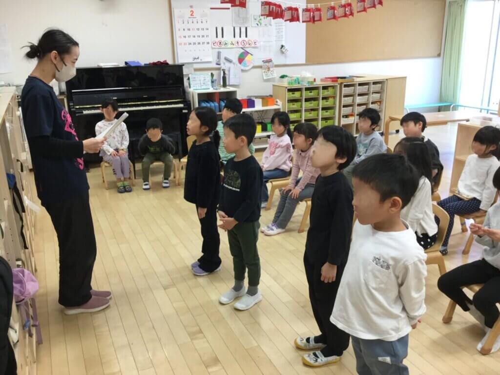 かぜ組(5歳)はもうすぐ卒園式です。みんなで楽しかったことや頑張ったことを思い出し、この1年をふりかえりました。クラスの絆を感じ、大きく成長した姿に卒園式の練習から目がうるみます。